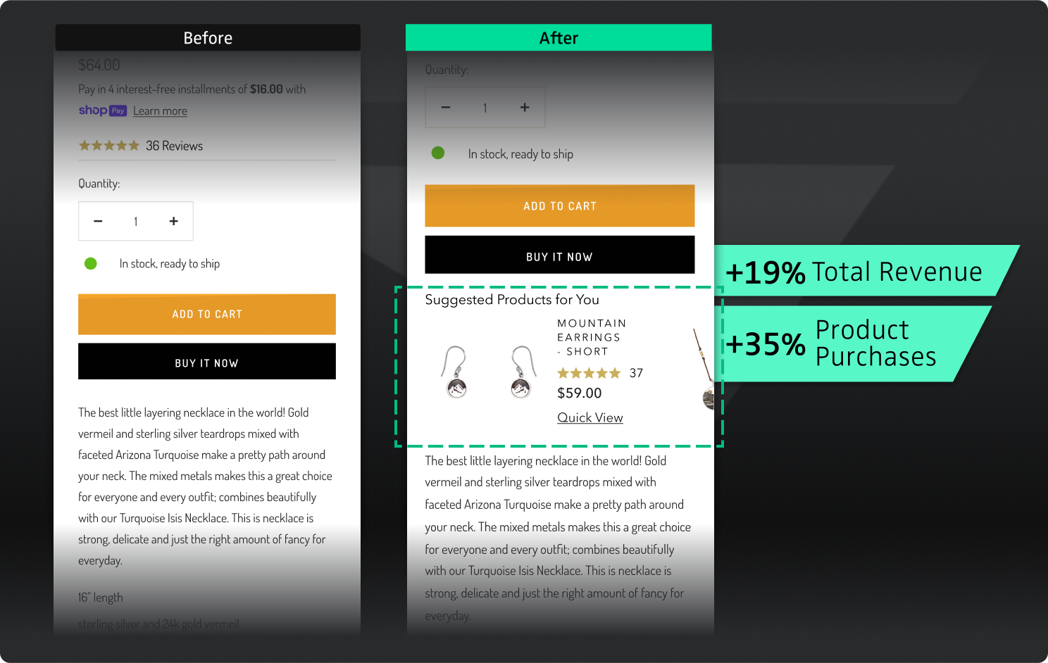 Bronwen Jewelry's product pages were missing opportunities for higher order values. Shoppers viewed single products but weren’t encouraged to explore or add more to their cart.